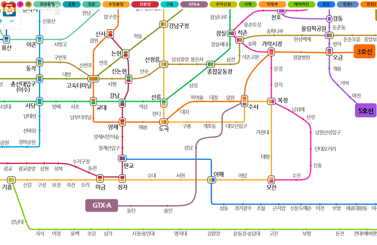 수서역(3호선·수인분당선·SRT)과 성남역(경강선) 등은 모두 환승역이다. 국가철도공단은 GTX에서 내려 다른 지하철 승강장까지 3분(보행속도 60m/분 기준) 이내 도착할 수 있도록 설계했다고 설명했다.