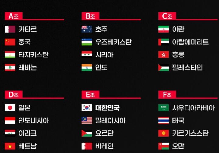 개최국 카타르부터, 호주, 이란, 일본, 대한민국, 사우디아라비아