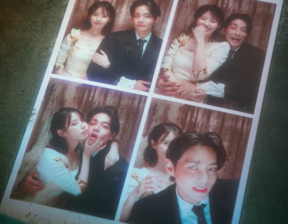 뮤직비디오에서 아이유와 뷔는 웨딩드레스와 턱시도를 입고 출연해 함께 네 컷 사진을 찍으며 달달한 모습을 연출했는데요. 사진에는 두 사람이 서로 볼을 맞대거나 다정하게 끌어안는 모습이 담겼습니다.