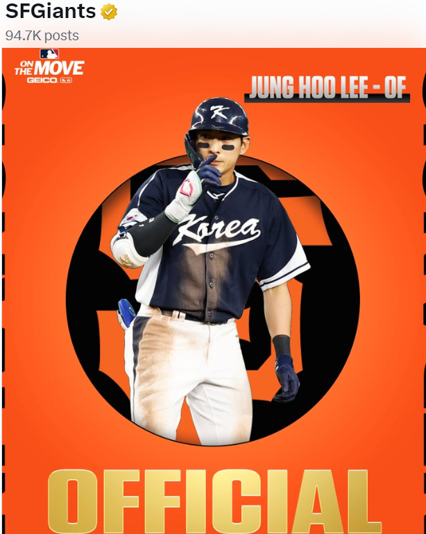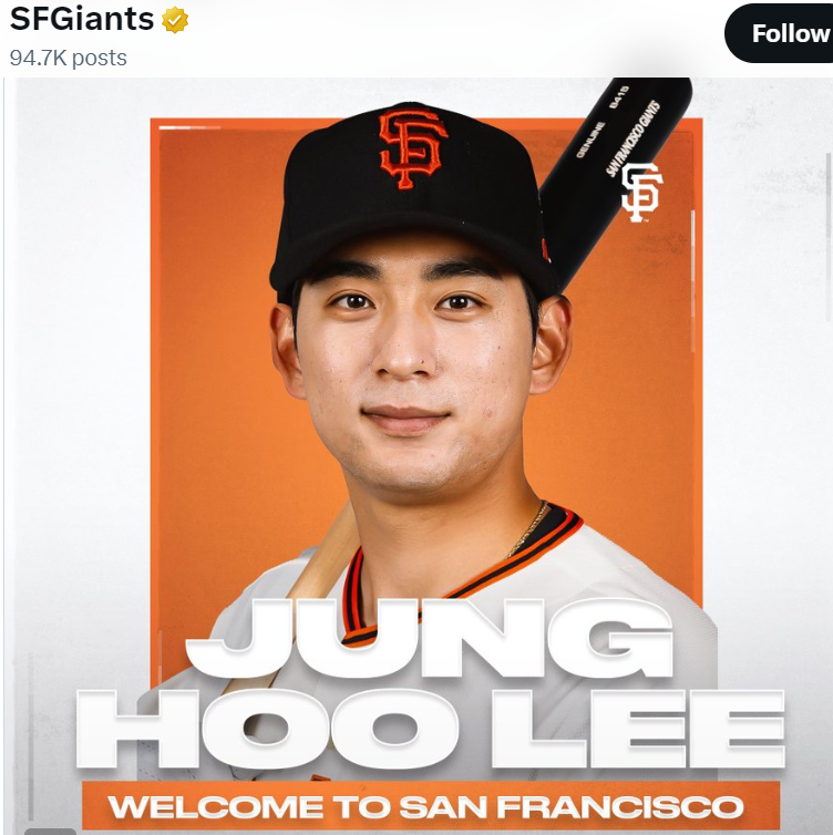 샌프란시스코 자이언츠의 X 홈페이지에는 벌써 이정후를 환영한다는 포스터가 내걸렸습니다. 25세의 젊은 야구 천재가 마침내 내년부터 메이저리그 샌프란시스코 자이언츠에서 뛰게 됩니다.