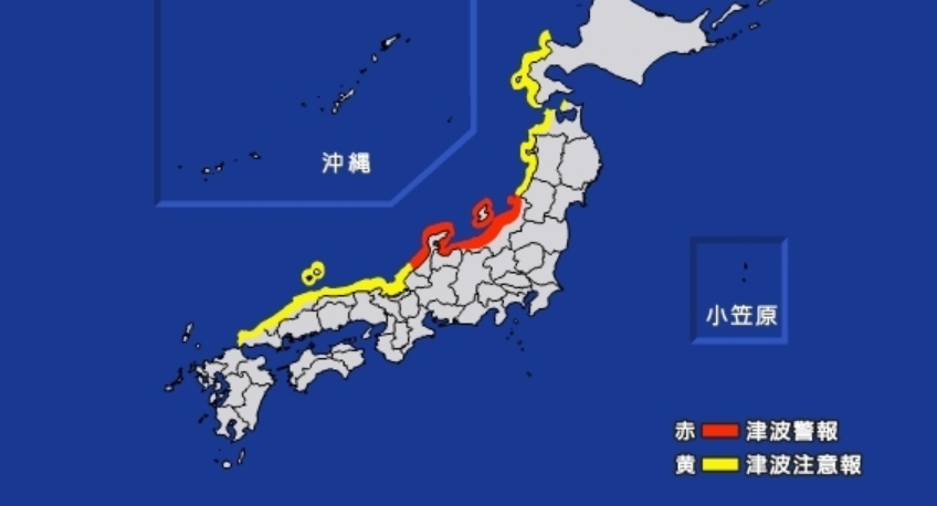 동해안과 인접한 일본 이시카와현 노토 지방에서 규모 7.6으로 추정되는 강진이 발생했습니다.