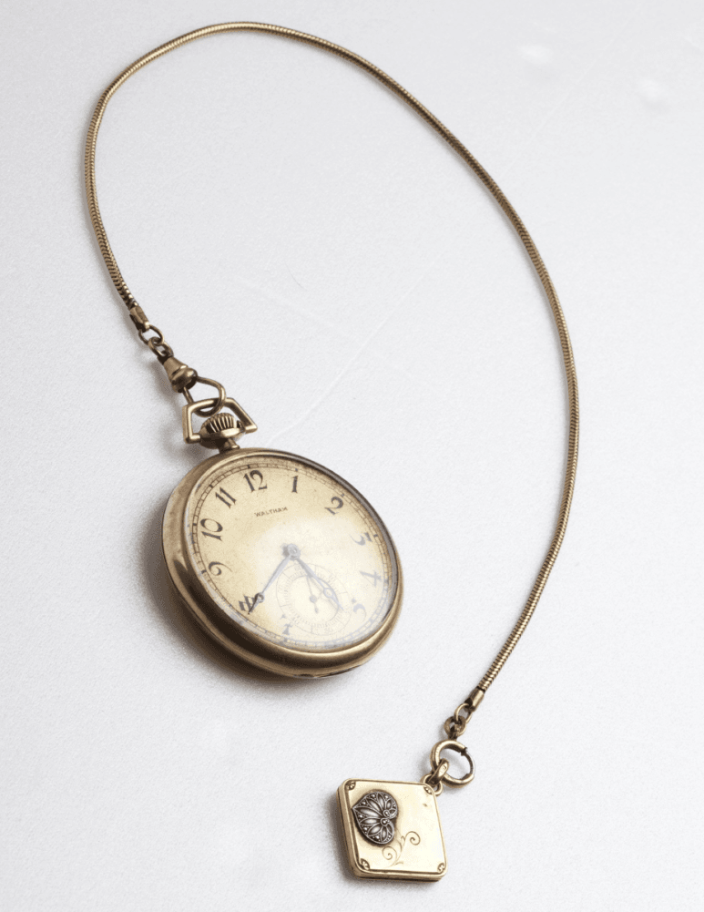 14K로 도금한 이 회중시계는 미국 시계회사 ‘월섬’(Waltham)이 제작한 것으로 애스터 4세의 이니셜 ‘JJA’이 새겨져 있다.