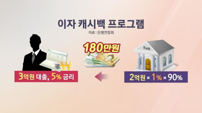 가령, 5% 금리로 3억 원을 대출받아 이자를 납부했다면, 한도인 2억 원 대출액에서 180만 원을 환급해 준다.