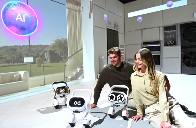 LG전자의 ‘스마트홈 AI 에이전트’는 두 바퀴로 스스로 움직이는 AI 반려 로봇이다.