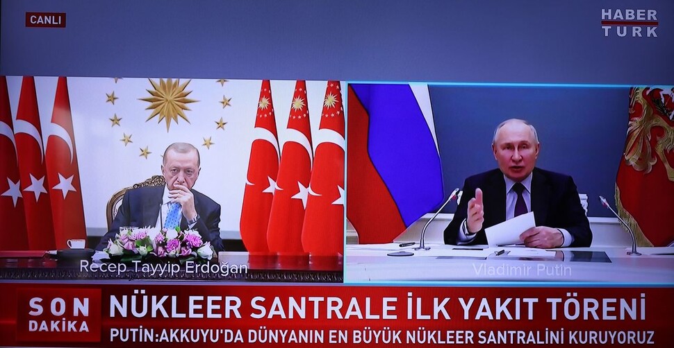 당시, 푸틴 대통령은 러시아의 국영 원전기업 로사톰이 참여한 아쿠유 원전의 연료 장전식에 화상으로 참여해